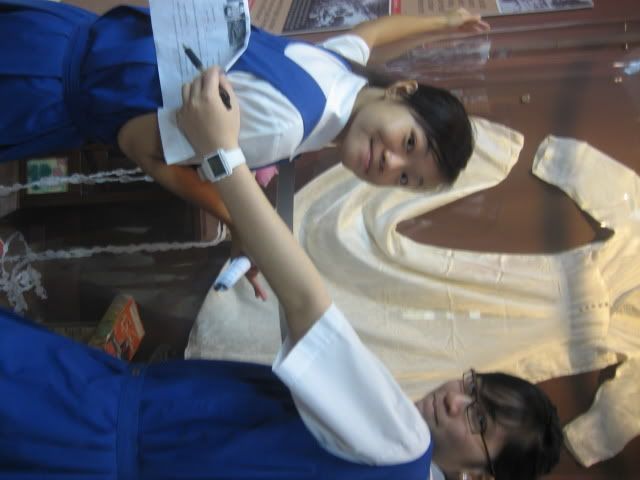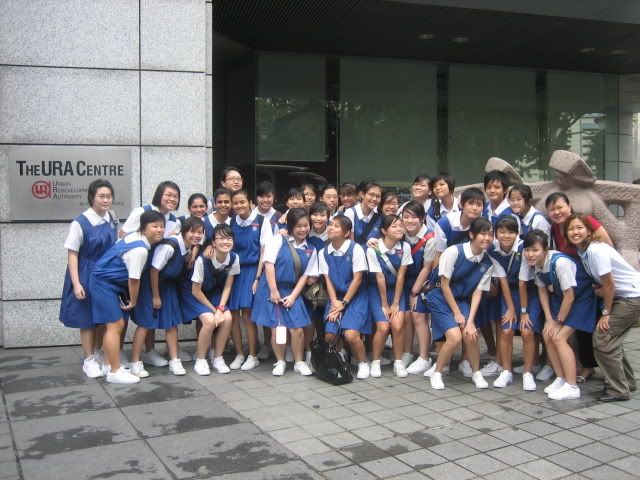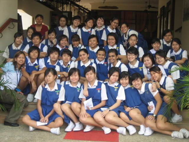 Walked over to URA, used their washrooms. Camwhored :) Gathered with the class & shared the juicy news, everyone went gaga. Haha, took class photo! :D Bus came & everyone just kept screaming & asking where where where?! Mrs Ong even ran all the way to the back of the bus to see him for the last few seconds. Hahah hilarious. Sass was just sitting on the seat & screamed her lungs out. Went off to the temple. Spent some time over there, did our worksheets. It was drizzling so we went back up to the bus. Next stop was the Eurasian Community House. President Nathan stays opposite! Hahah.