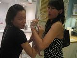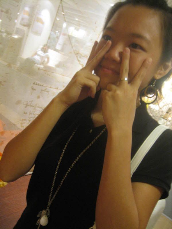 After that we cabbed to town, dropped Bestaye at Queenstown train station & went off to Somerset. KLJ came with Liz, after that, Sass, Qiaos & I left to Heeren. Sass got her black jeans! Damn nice. Walked around, went over to Wisma to check out my top. Bloody hell, don't have my size ): I'm going to go get it this weekend with Maine, probably. Mm after that we went to meet Xiangling & went over to BK at Wheelock 'cos Xiangling wanted to eat. Sat around, watched some bloody funny disturbing videos, talked & laughed hell a lot. Walked over to Shaw, saw Sharene & Lydia at Mac's. Went to Mango, looked around & went over to Far East. We were actually waiting for Shyan to be done with her shopping la huh. Left after walking awhile. Sass went to take train, I took a cab while Qiaos & Xiangling went to meet Shyan.